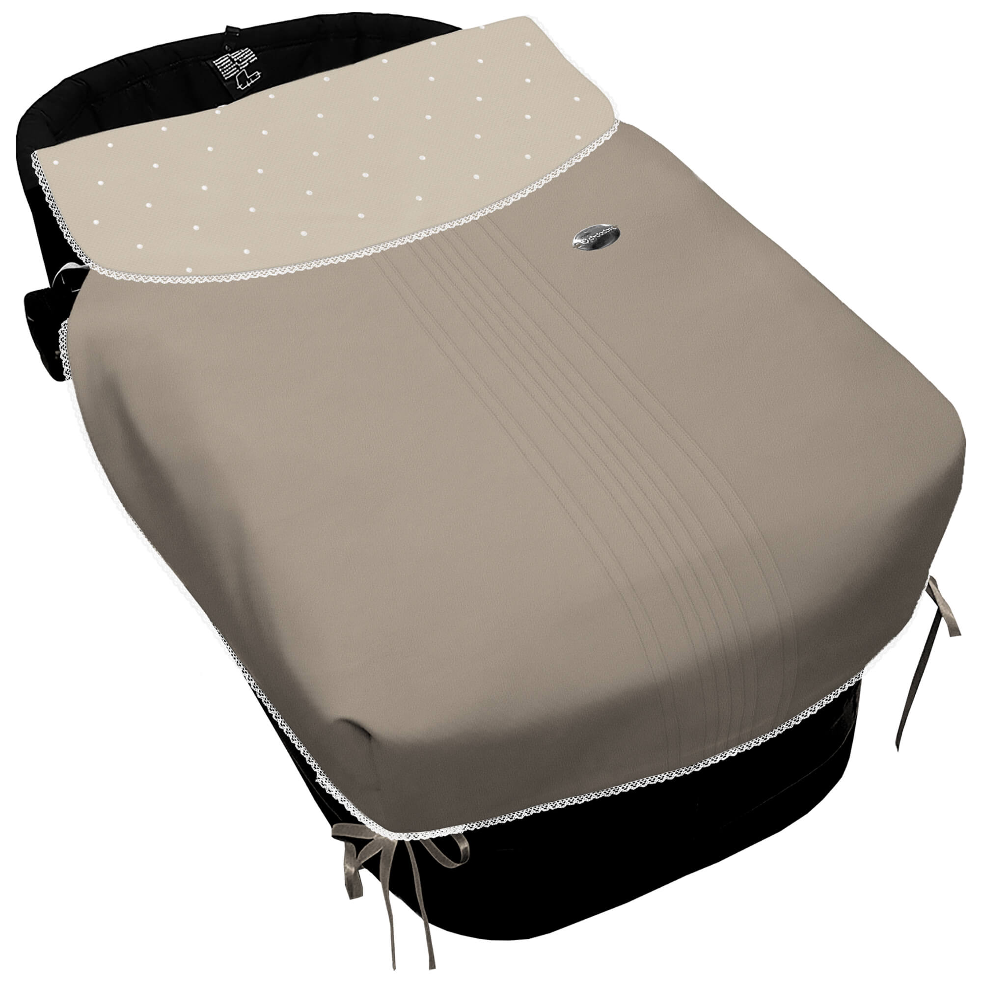 Pol, Bord_ Colcha Lazos Alex-Leslie Jaretas Tostado Puntilla y Topitos Blanco PIQUE TOSTADO