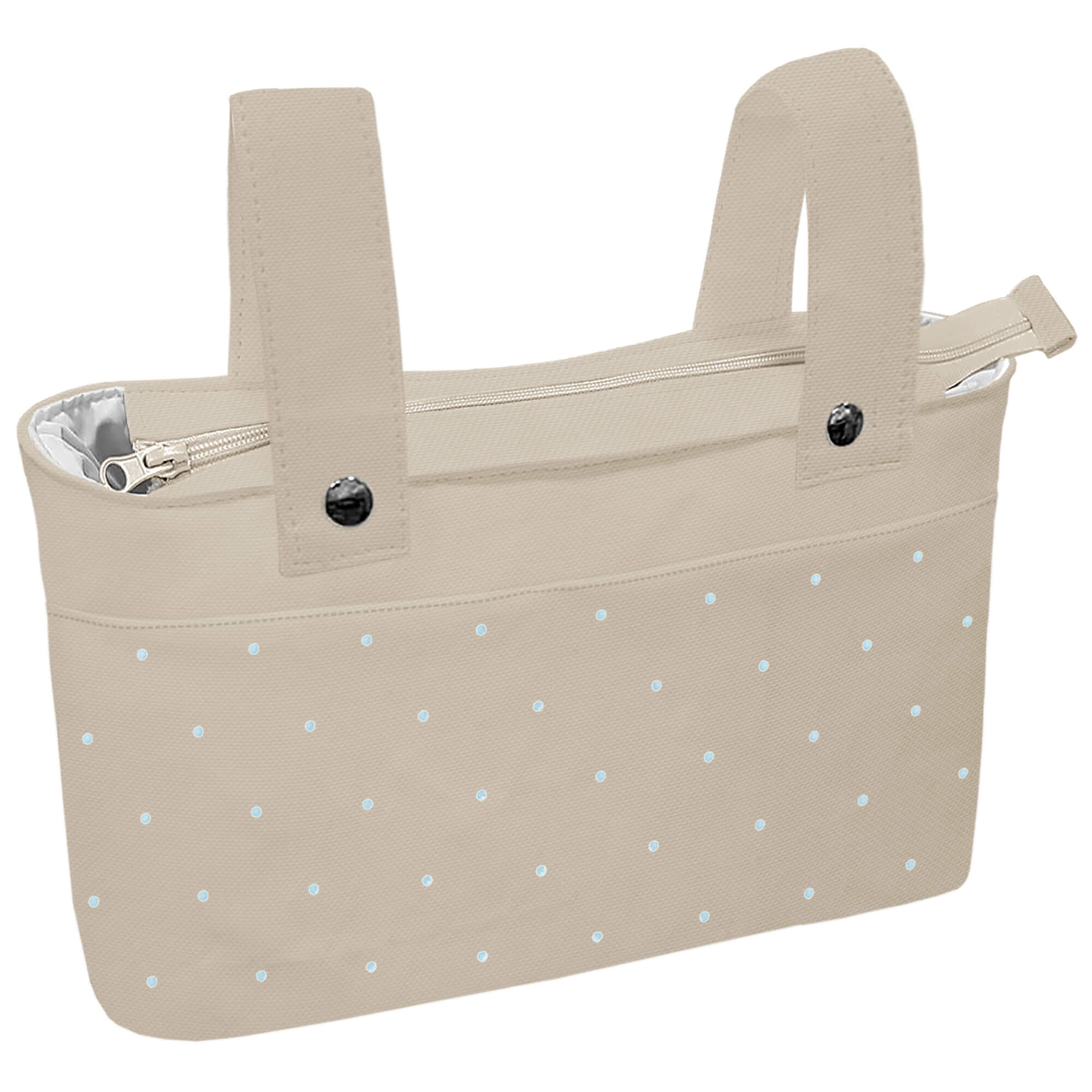 Piq, Bord_ B. Organizador Remy Piqué Camel Bordado Topitos Celeste T. IMPERMEABLE BLANCO