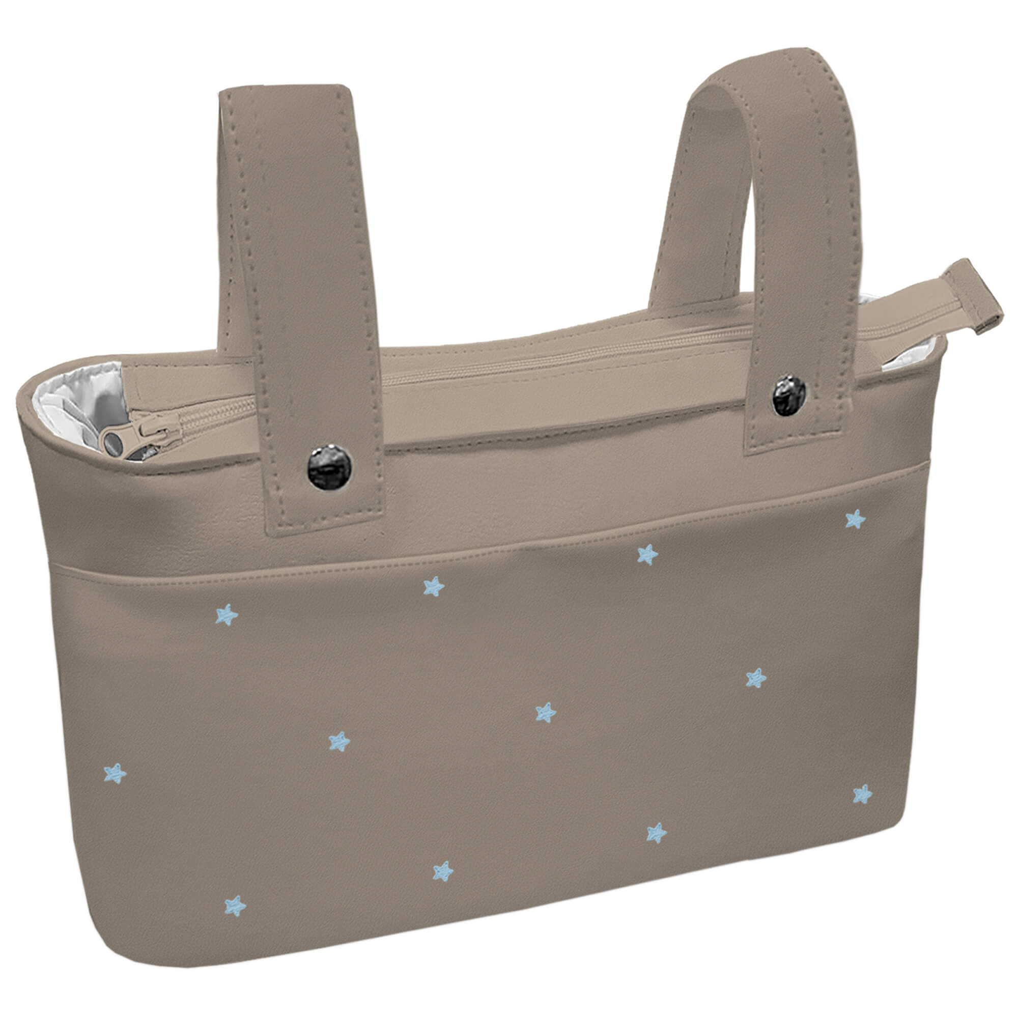 Pol, Bord_ B. Organizador Jade Polipiel Tostado Bordado Estrellas Celeste T. IMPERMEABLE BLANCO