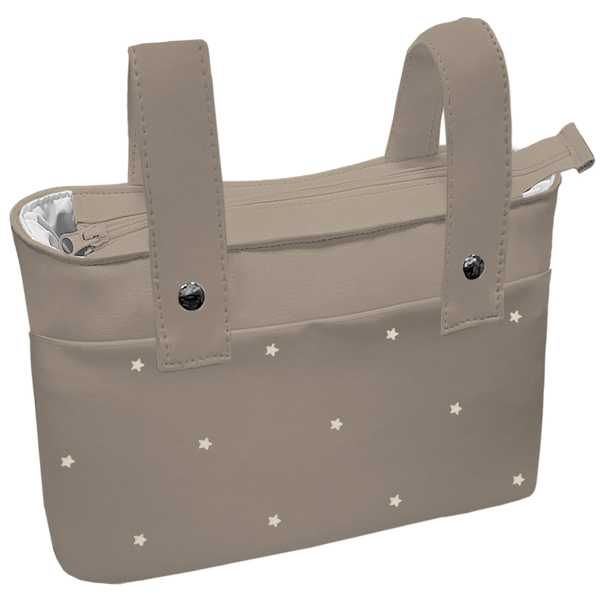 Pol, Bord_ B. Organizador XL Jade Polipiel Tostado Bordado Estrellas Crudo T. IMPERMEABLE BLANCO