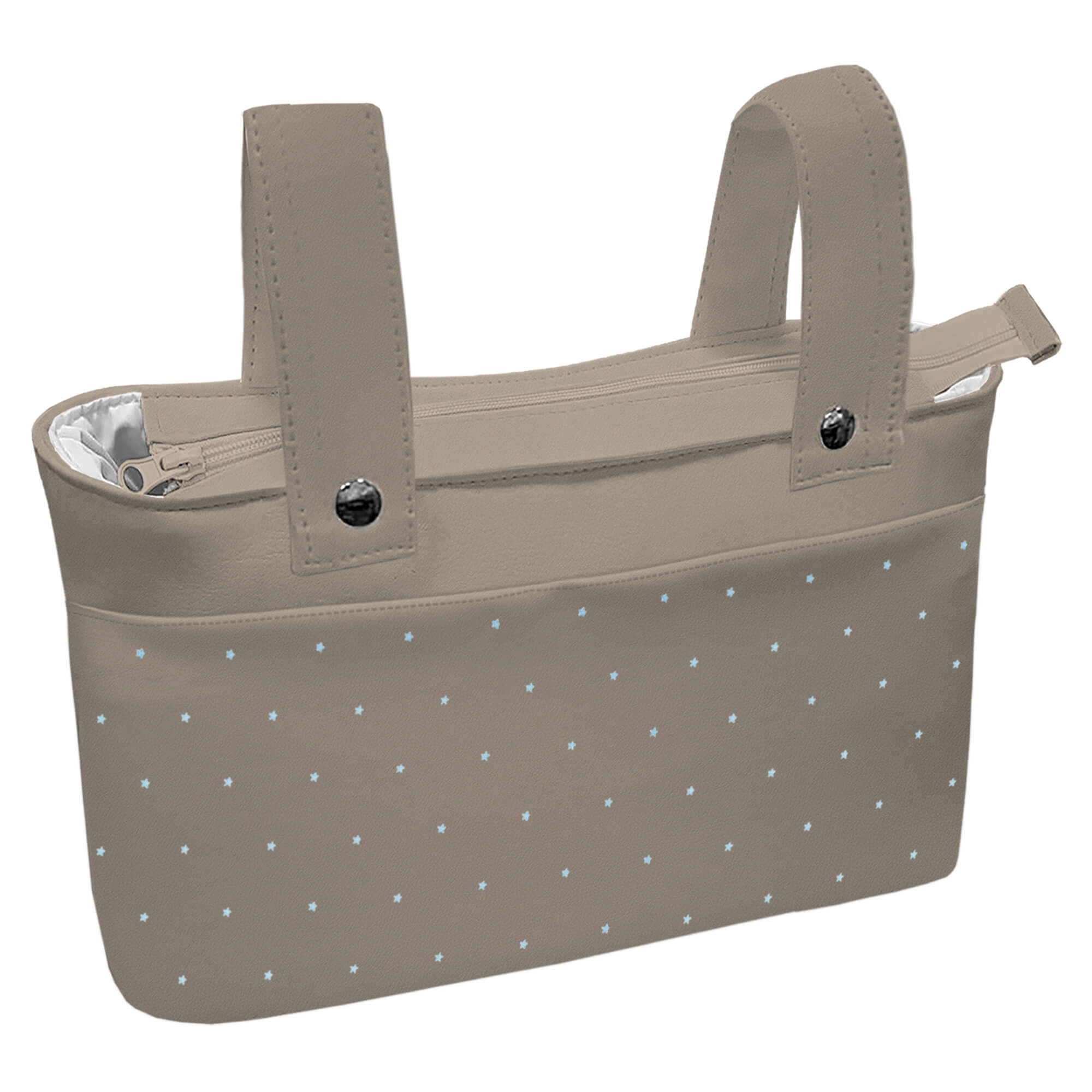 Pol, Bord_ B. Organizador Joss Polipiel Tostado Bordado Estrellitas Celeste T. IMPERMEABLE BLANCO