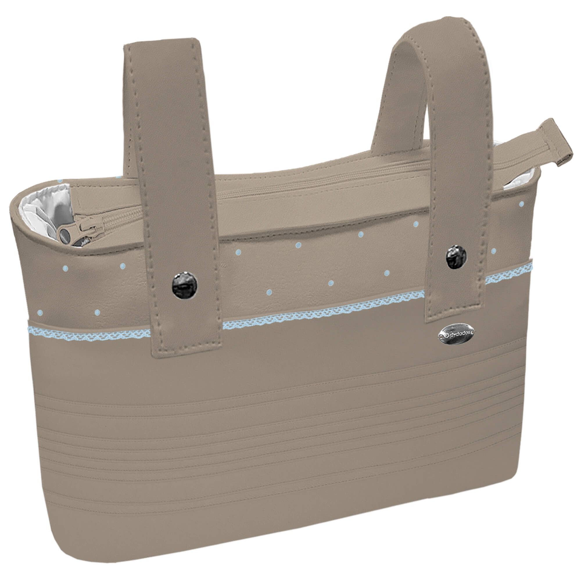 Pol, Bord_ B. Organizador XL Alex-Leslie Jaretas Tostado Puntilla y Topitos Celeste T. IMPERMEABLE BLANCO