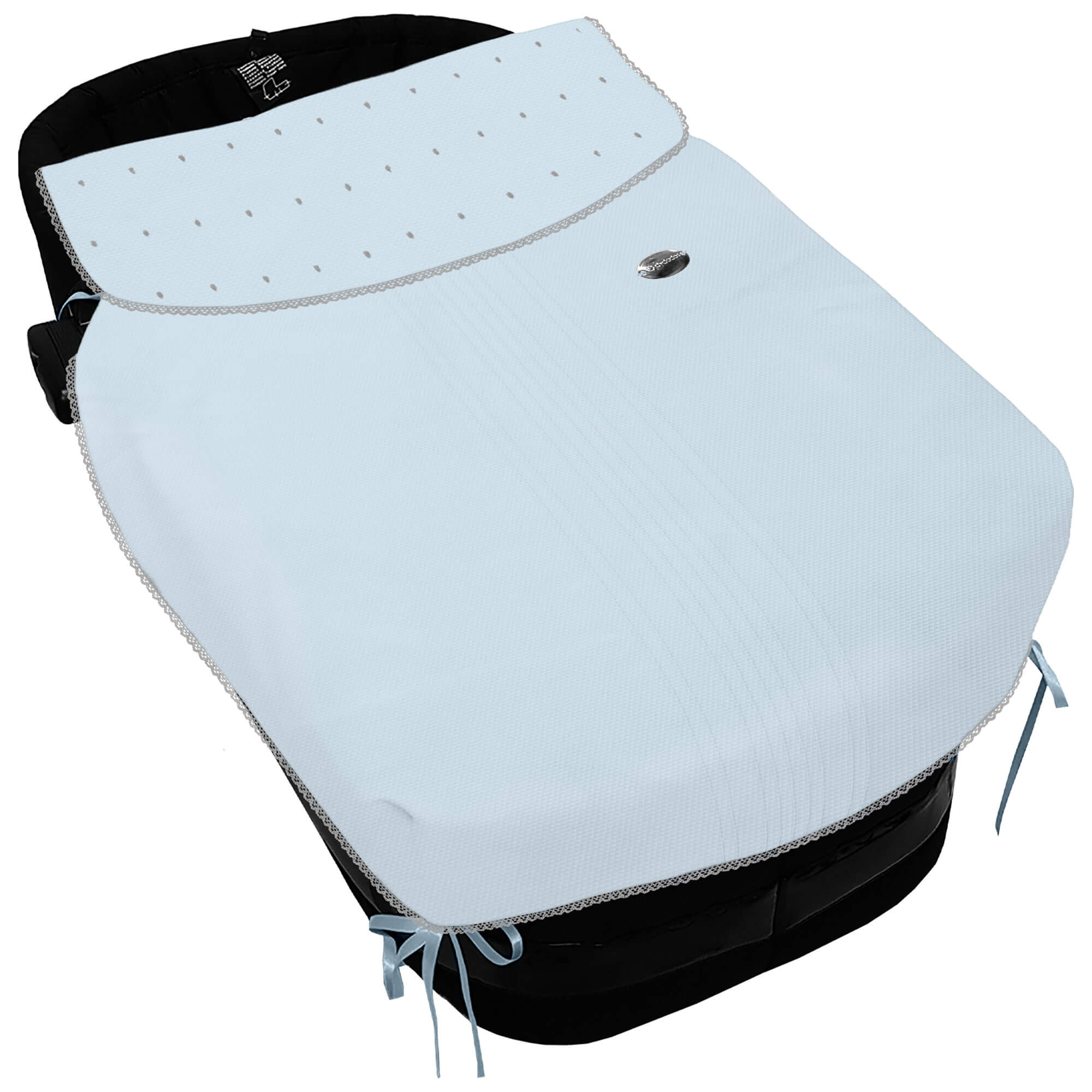 Piq, Bord_ Colcha Capazo Leslie Piqu? Jaretas Celeste Topitos y Puntilla Gris PIQUE CELESTE