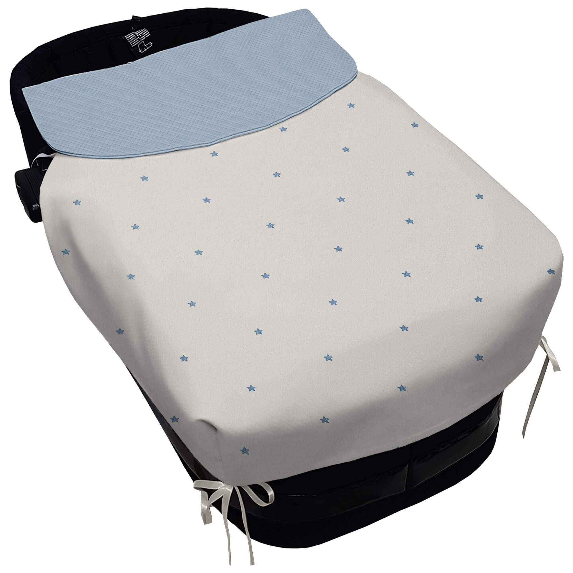 Pol,Bord_ Colcha Capazo Jade Polipiel Crudo Bordado Estrellas Azul?n NAPOLES AZULON