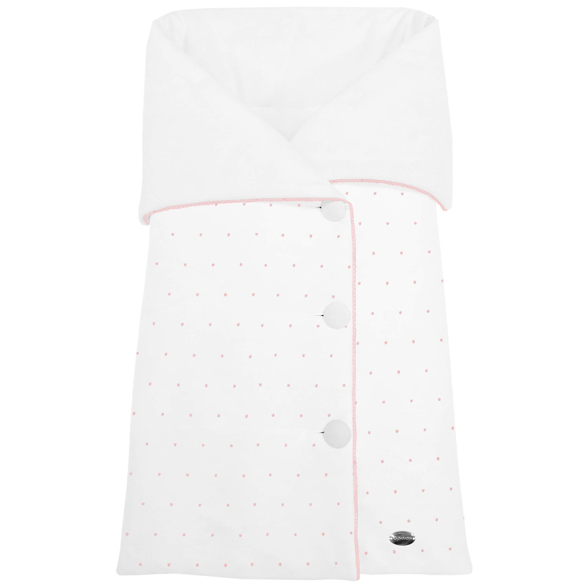 Piq, Bord_ S. Arrullo Alex-Leslie Blanco bordado Topitos y puntilla Rosa PIQUE BLANCO