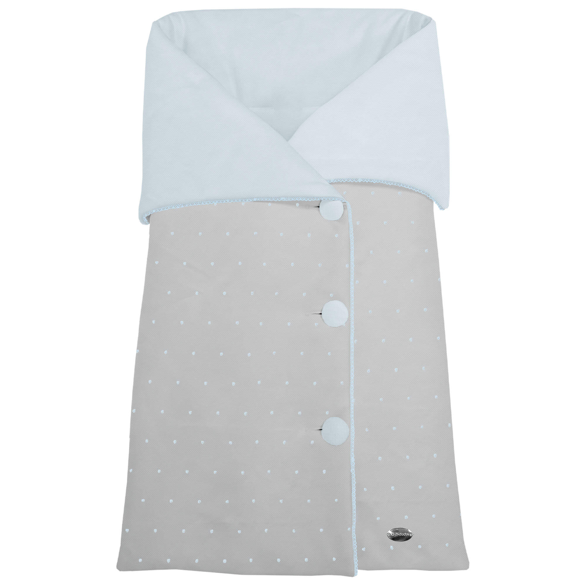 Piq, Bord_ S. Arrullo Alex-Leslie Gris bordado Topitos y puntilla Celeste PIQUE CELESTE