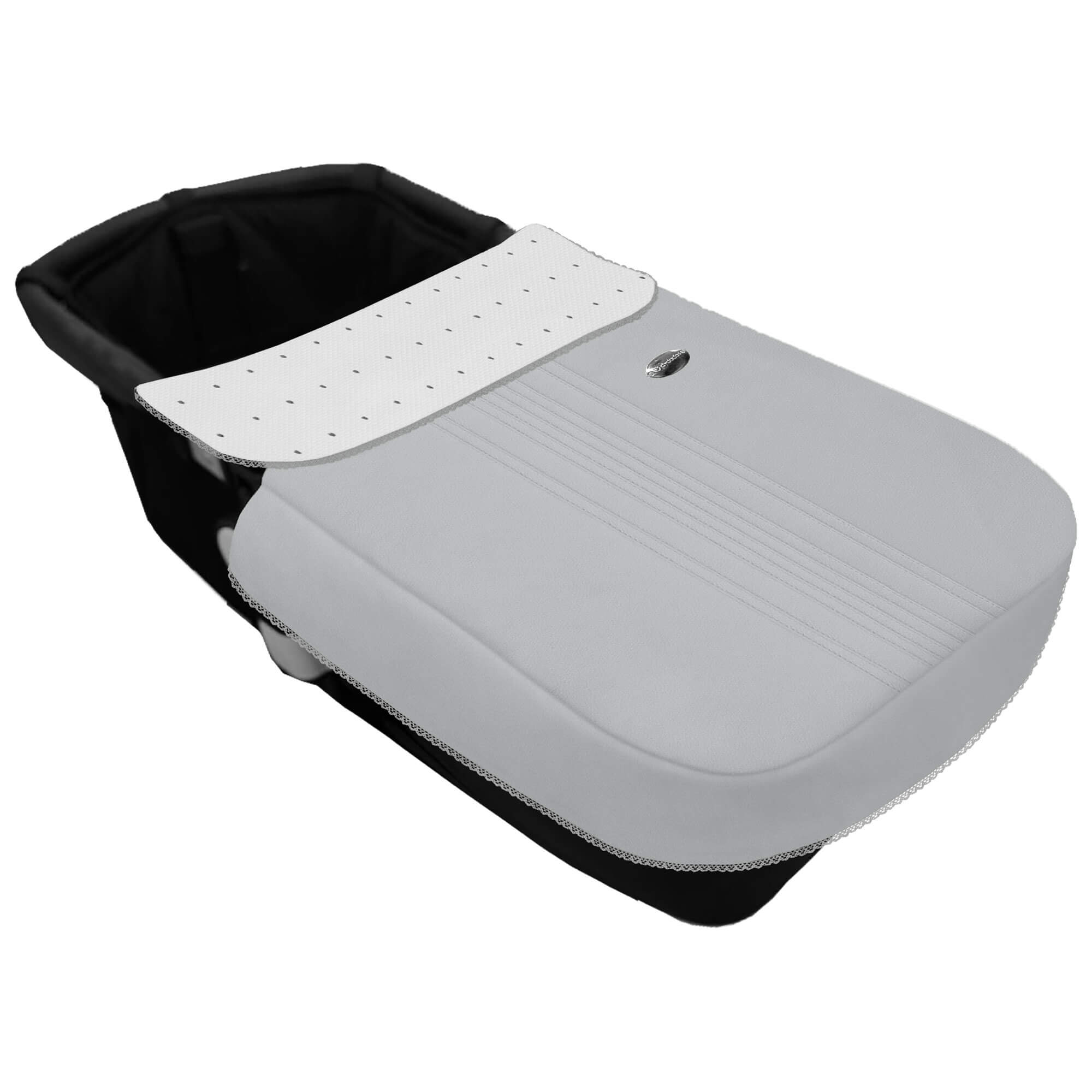 Pol, Bord_ S. Cap, con Colcha Cinturon Alex Polipiel Jaretas Gris Topitos y Puntilla Blanco PIQUE GRIS