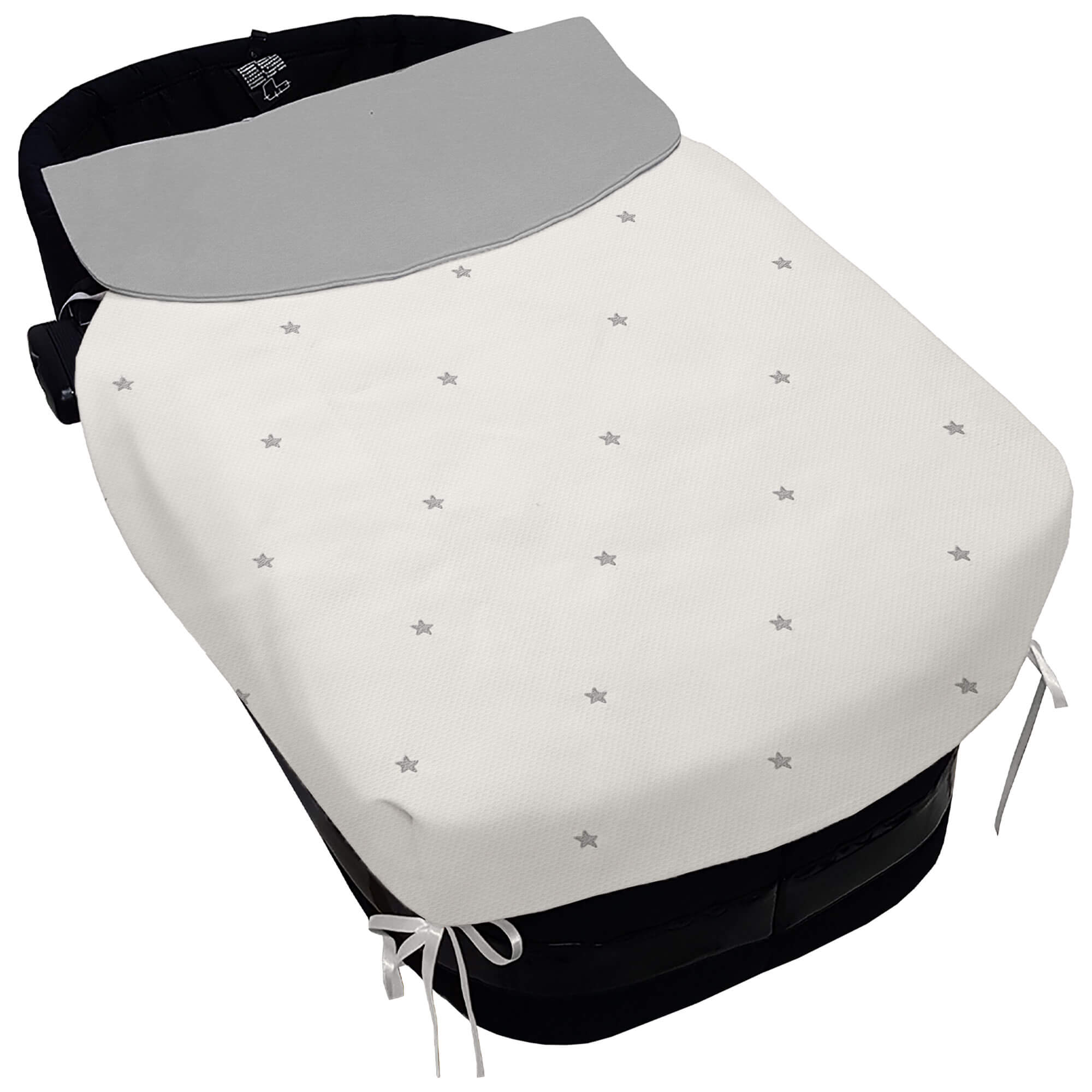 Piq, Bord_ S. Cap, con Colcha Cris Piqu? Crudo Bordado Estrellas Gris Pelo GRIS