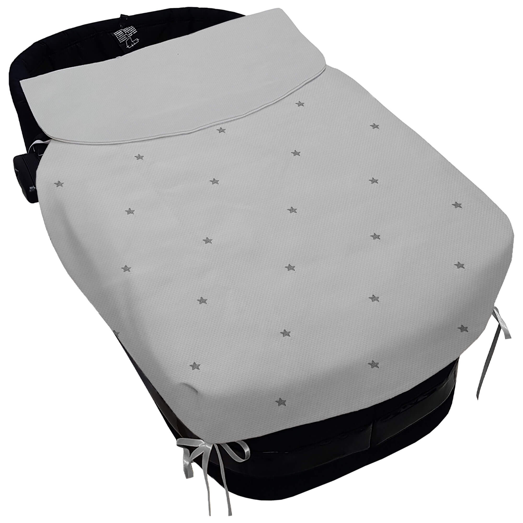 Piq, Bord_ S. Cap, con Colcha Cris Piqu? Gris Bordado Estrellas Gris PIQUE GRIS
