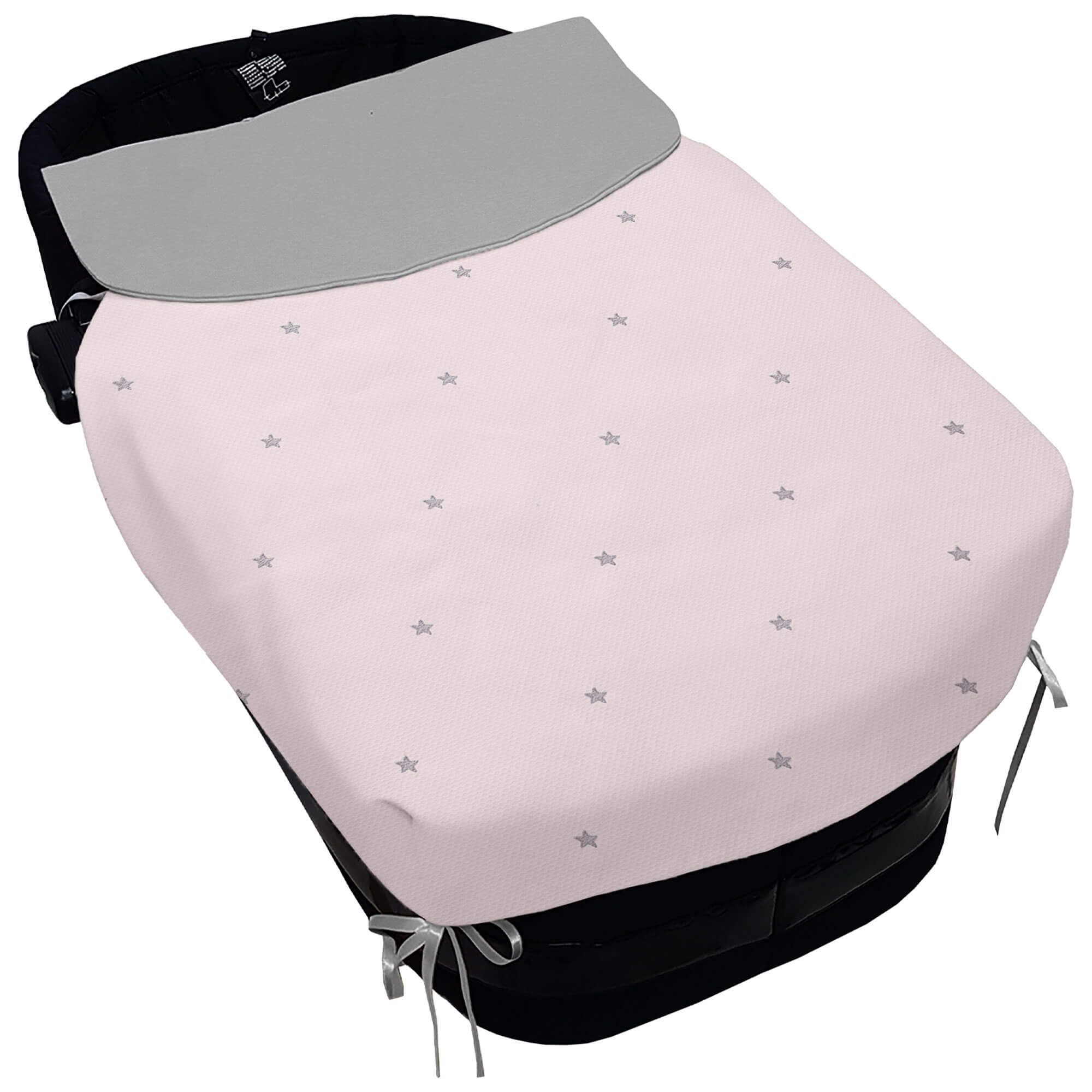 Piq, Bord_ S. Cap, con Colcha Cris Piqu? Rosa Bordado Estrellas Gris Pelo GRIS