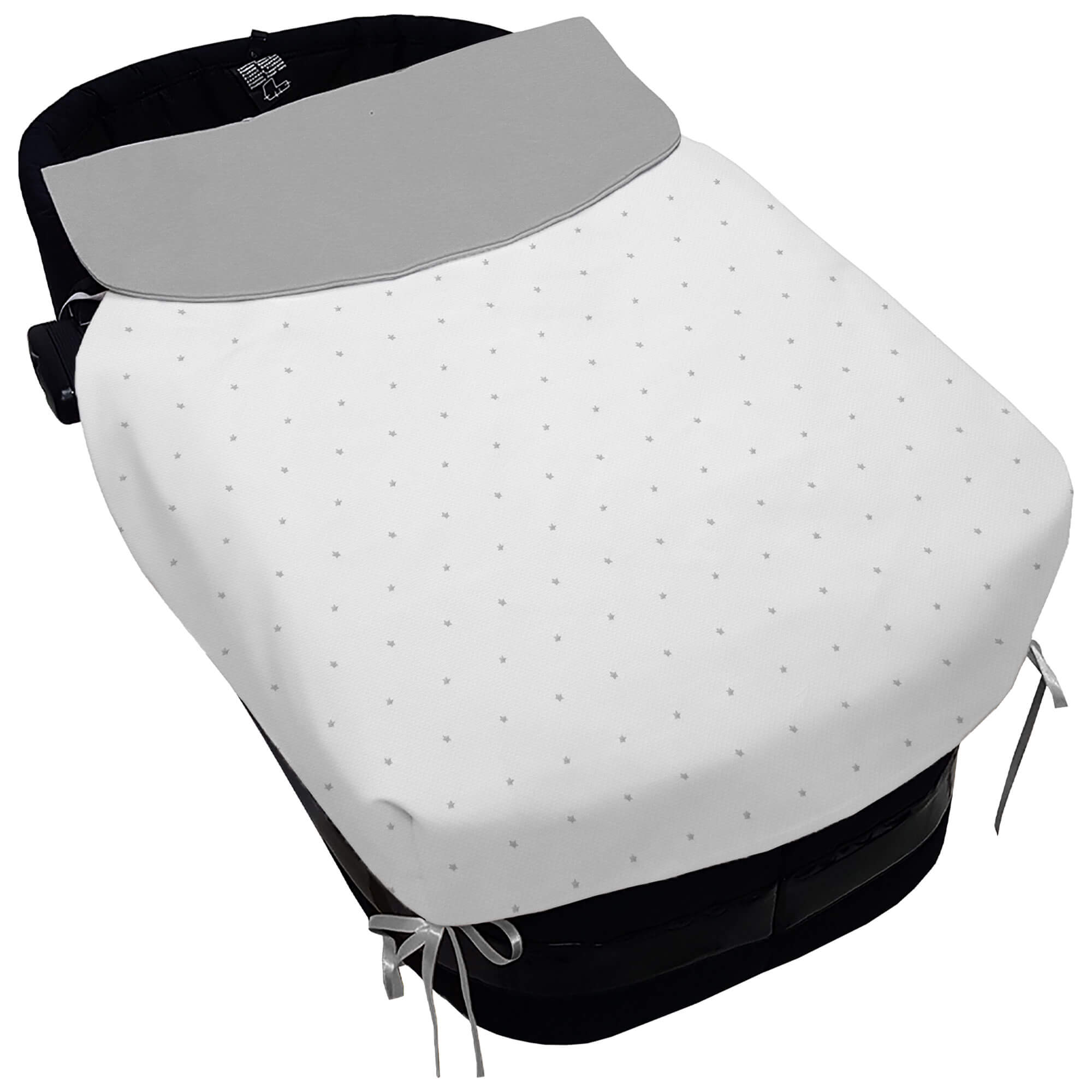 Piq, Bord_ S. Cap, con Colcha Ariel Piqu? Blanco Bordado Estrellitas Gris Pelo GRIS
