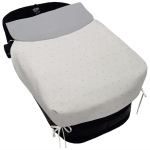 Piq, Bord_ S. Cap, con Colcha Den?s Piqu? Crudo Bordado Topitos Gris PIQUE GRIS