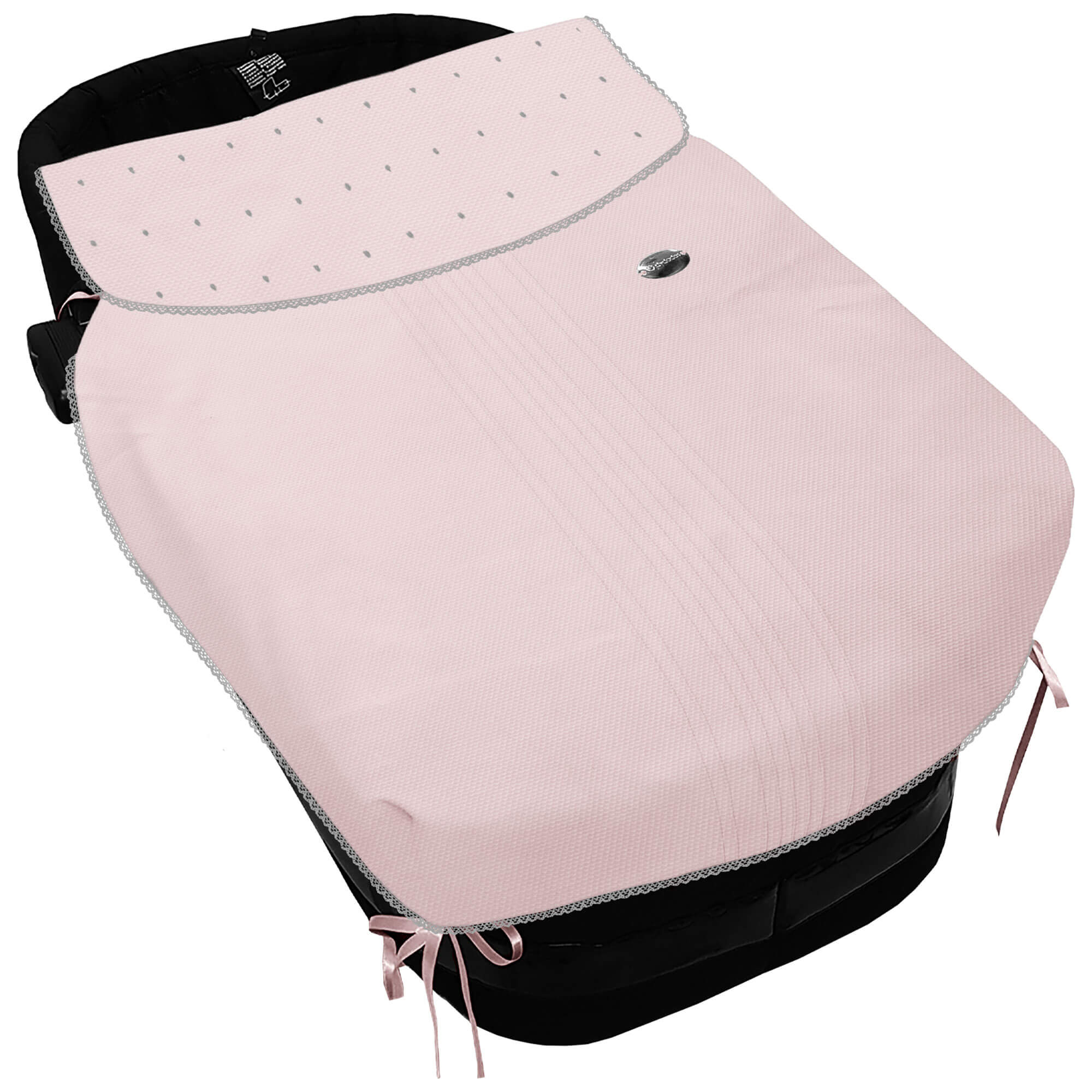 Piq, Bord_ S. Cap, con Colcha Leslie Piqu? Jaretas Rosa Topitos y Puntilla Gris PIQUE ROSA