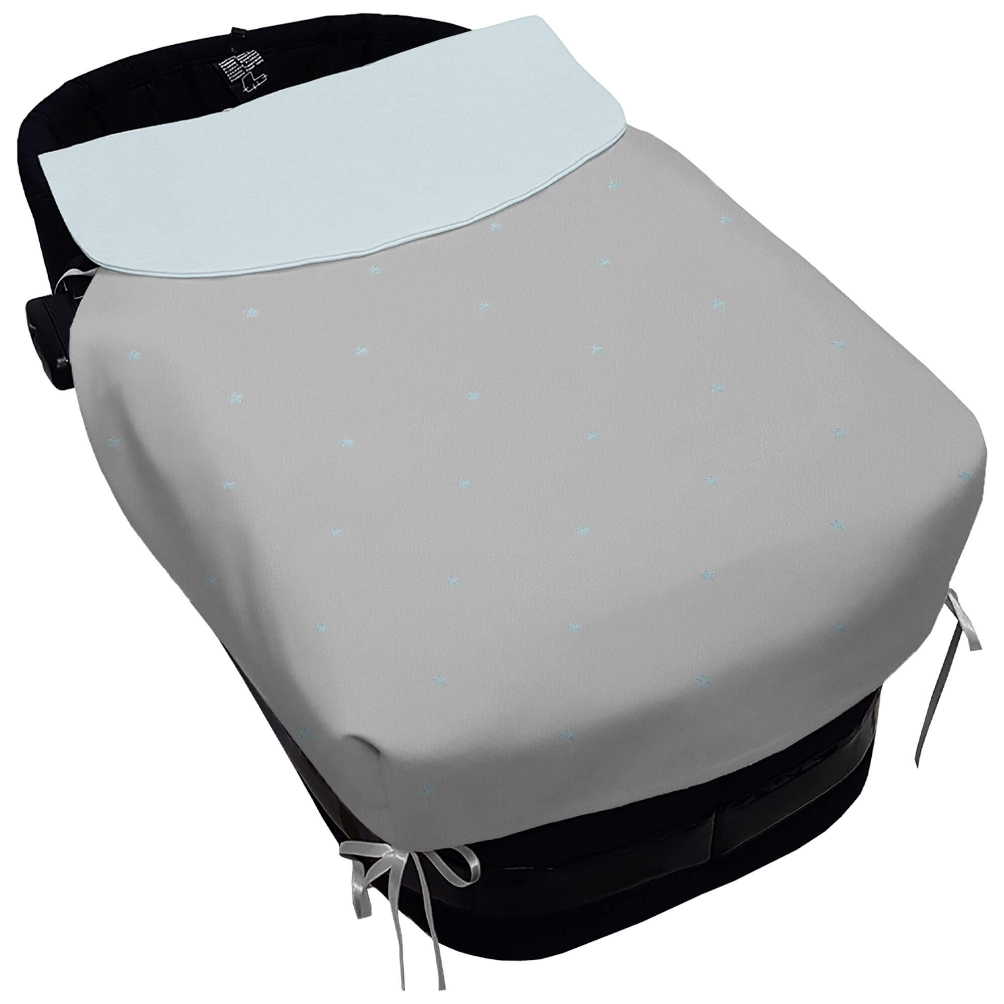 Pol, Bord_ S. Cap, con Colcha Jade Polipiel Gris Bordado Estrellas Celeste Pelo CELESTE