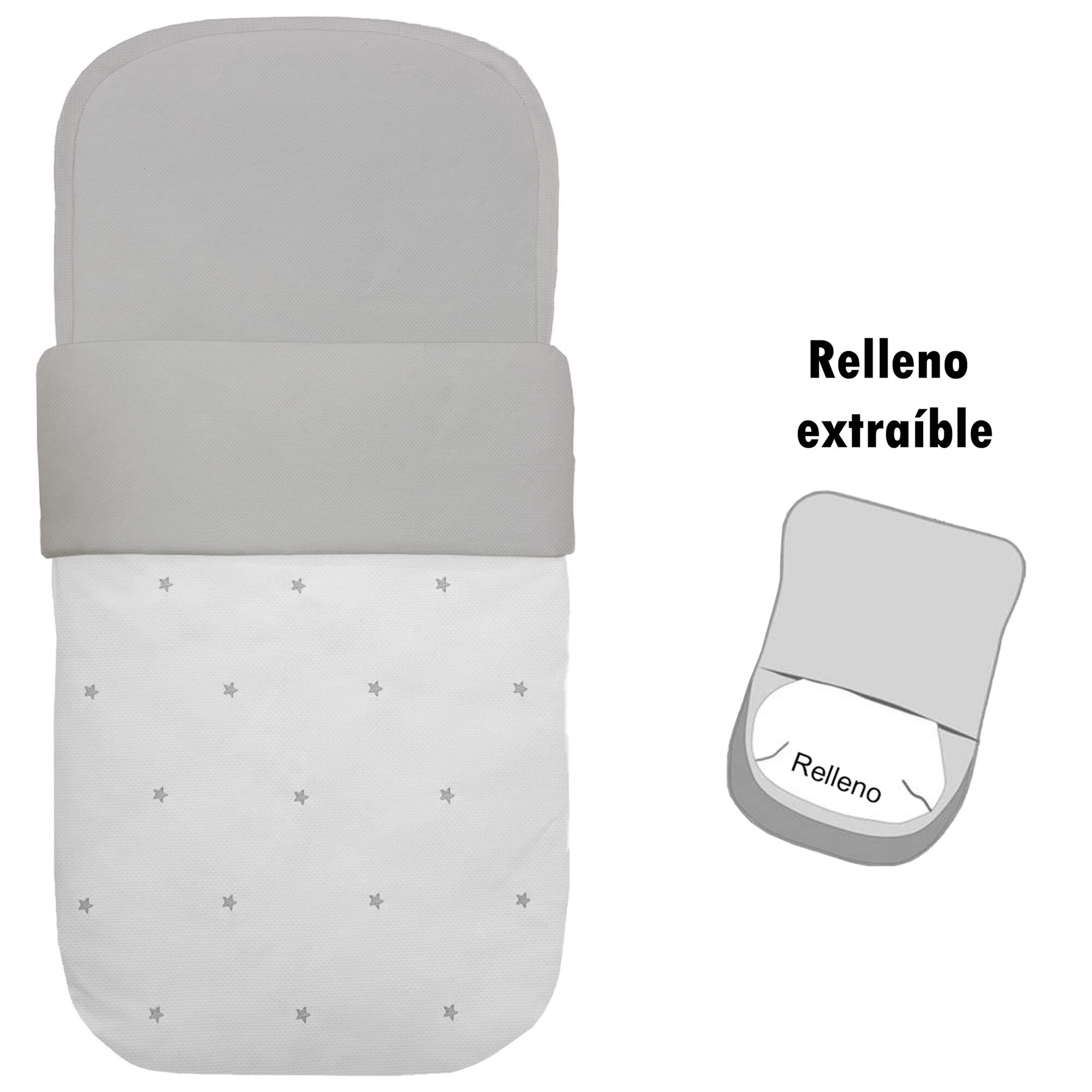 Piq, Bord_ S. Capazo Cris Piqu? Blanco Bordado Estrellas Gris NAPOLES GRIS DESENFUNDABLE