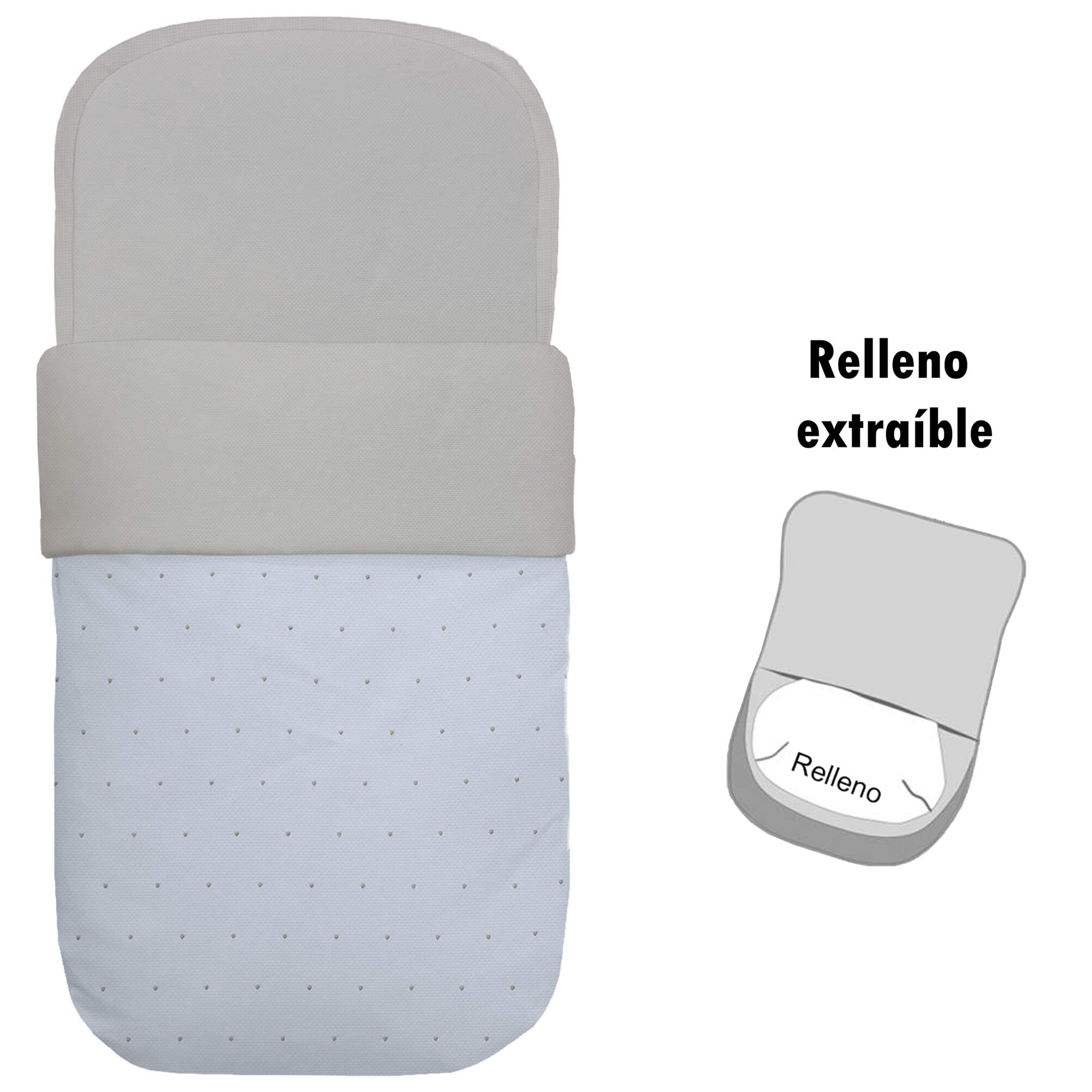 Piq, Bord_ S. Capazo Den?s Piqu? Celeste Bordado Topitos Gris PIQUE GRIS DESENFUNDABLE