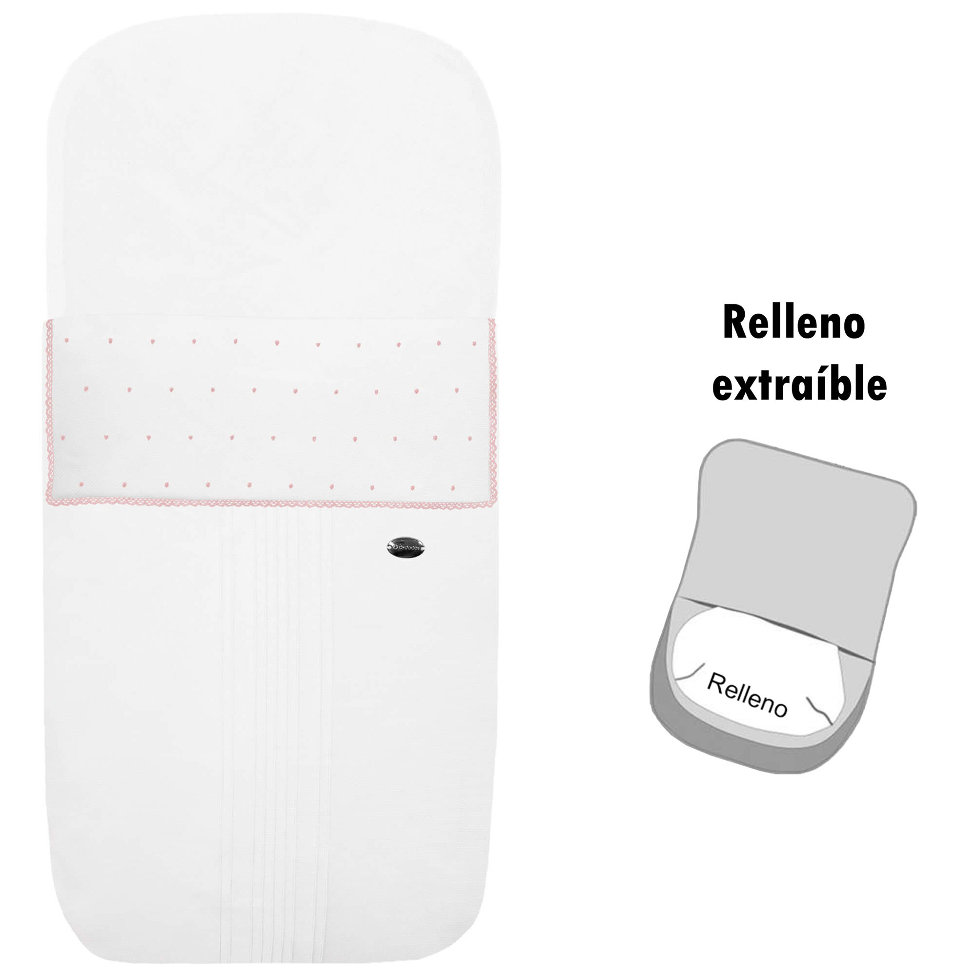 Piq, Bord_ S. Capazo Leslie Piqu? Jaretas Blanco Puntilla y Topitos Rosa PIQUE BLANCO DESENFUNDABLE
