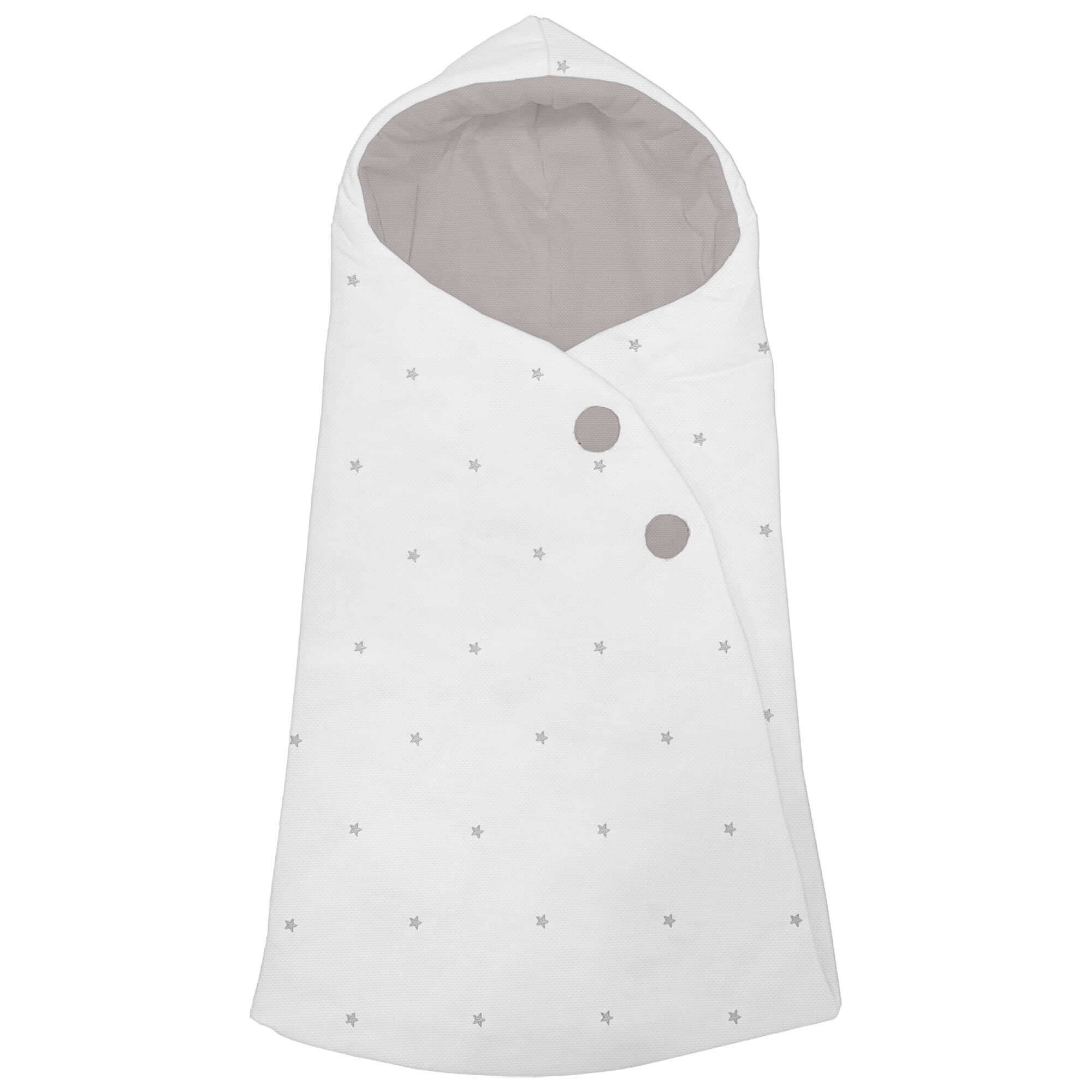 Piq, Bord_ S. Capucha Cris Blanco bordado Estrellas Gris PIQUE GRIS