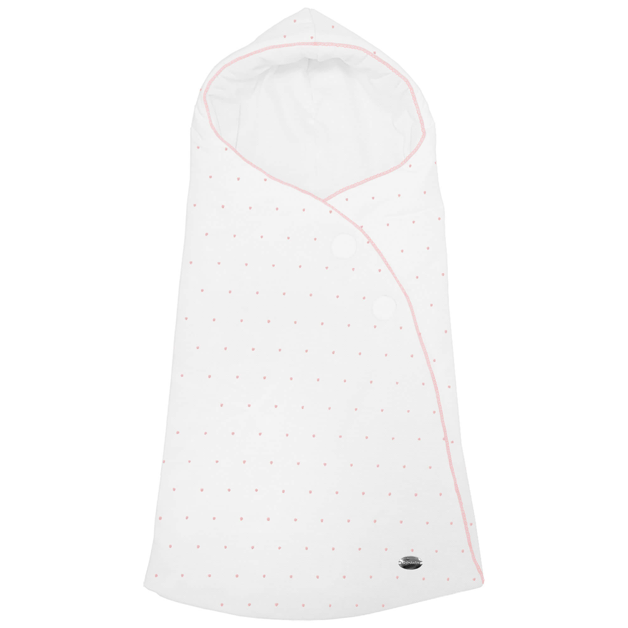 Piq, Bord_ S. Capucha Alex-Leslie Blanco bordado Topitos y puntilla Rosa PIQUE BLANCO