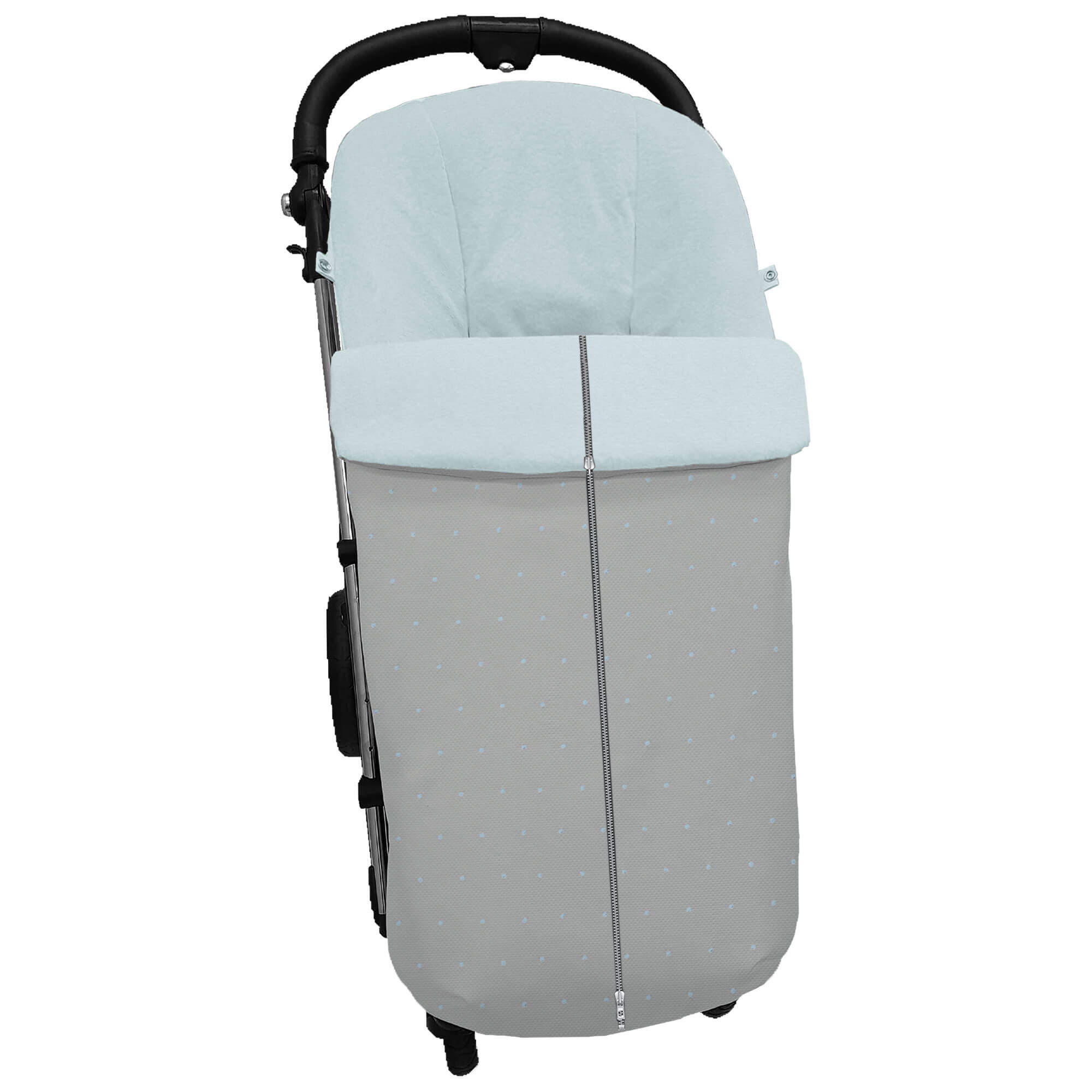 Piq, Bord_ S. Global Cremall, Den?s Piqu? Gris Bordado Topitos Celeste Pelo CELESTE CREMALLERA