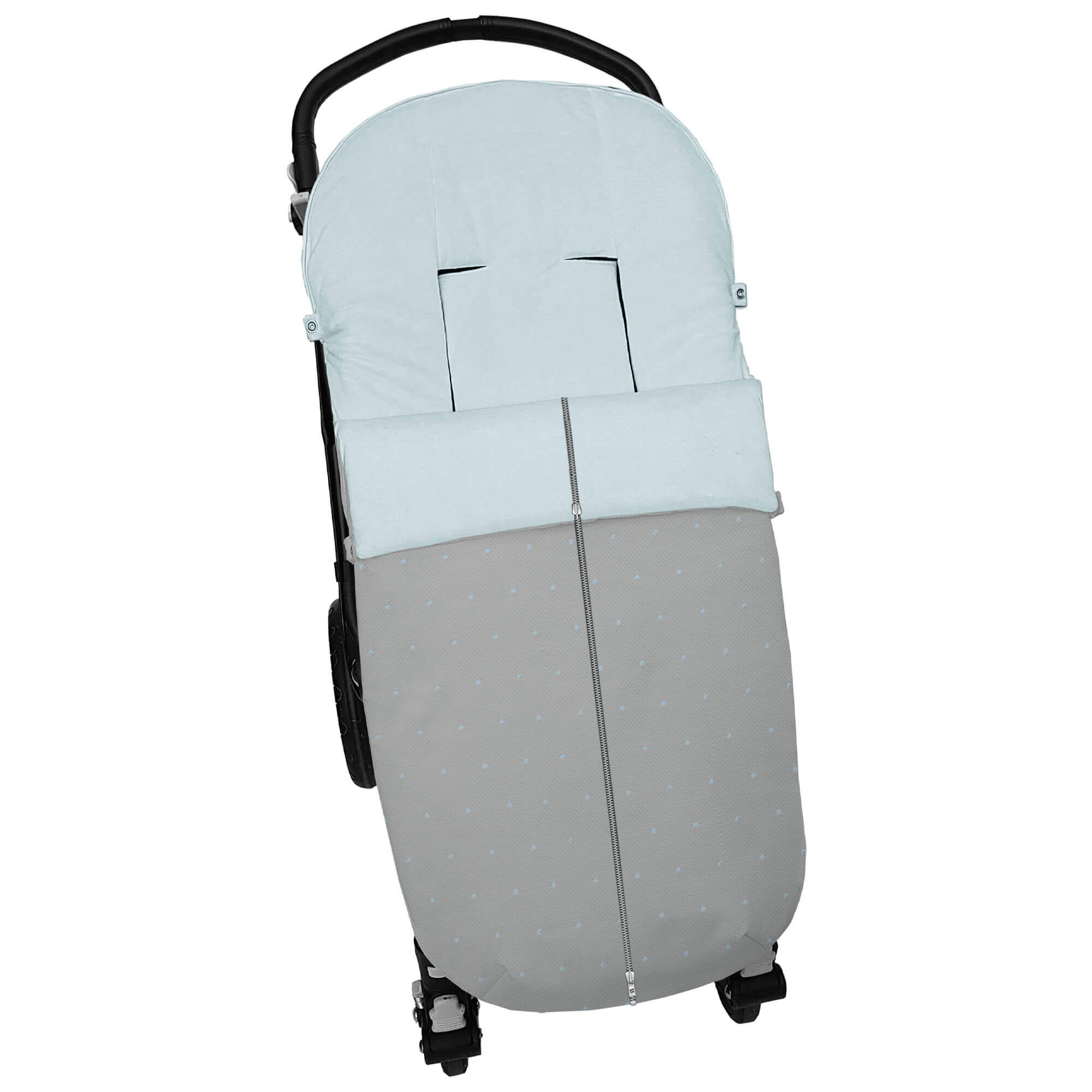 Piq, Bord_ S. Universal Cremall, Den?s Piqu? Gris Bordado Topitos Celeste Pelo CELESTE CREMALLERA