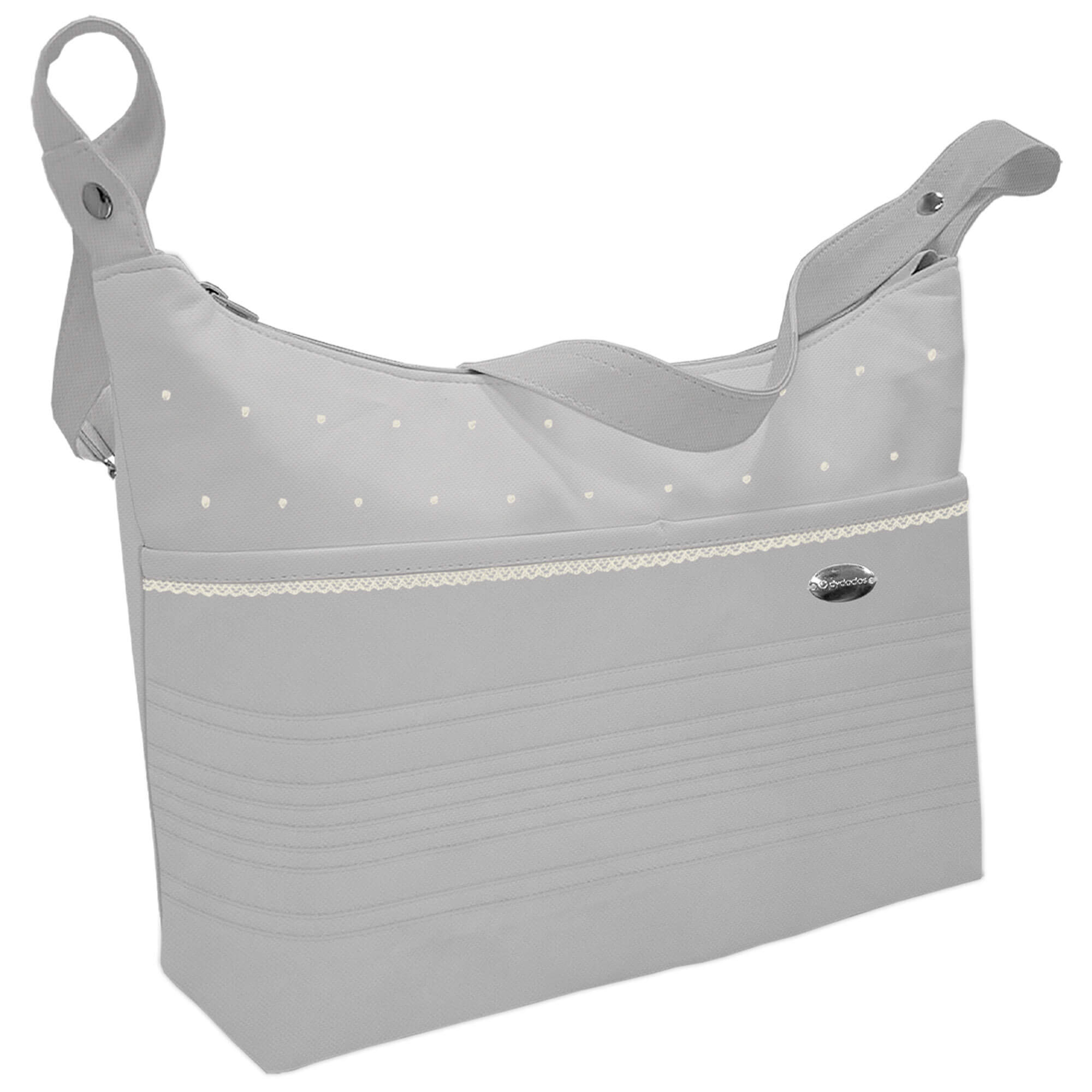 Piq, Bord_ B. Barco Leslie Piqu? Jaretas Gris con topitos y puntilla Crudo T. IMPERMEABLE BLANCO