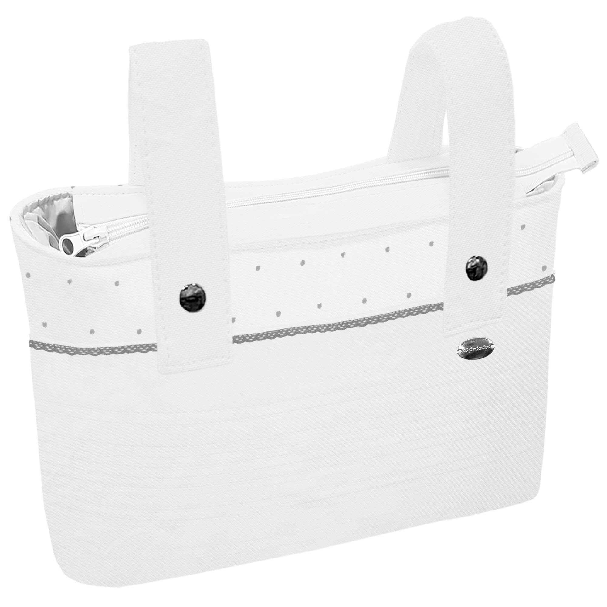 Piq, Bord_ B. Organizador XL Leslie Piqu? Jaretas Blanco con puntilla Gris T. IMPERMEABLE BLANCO