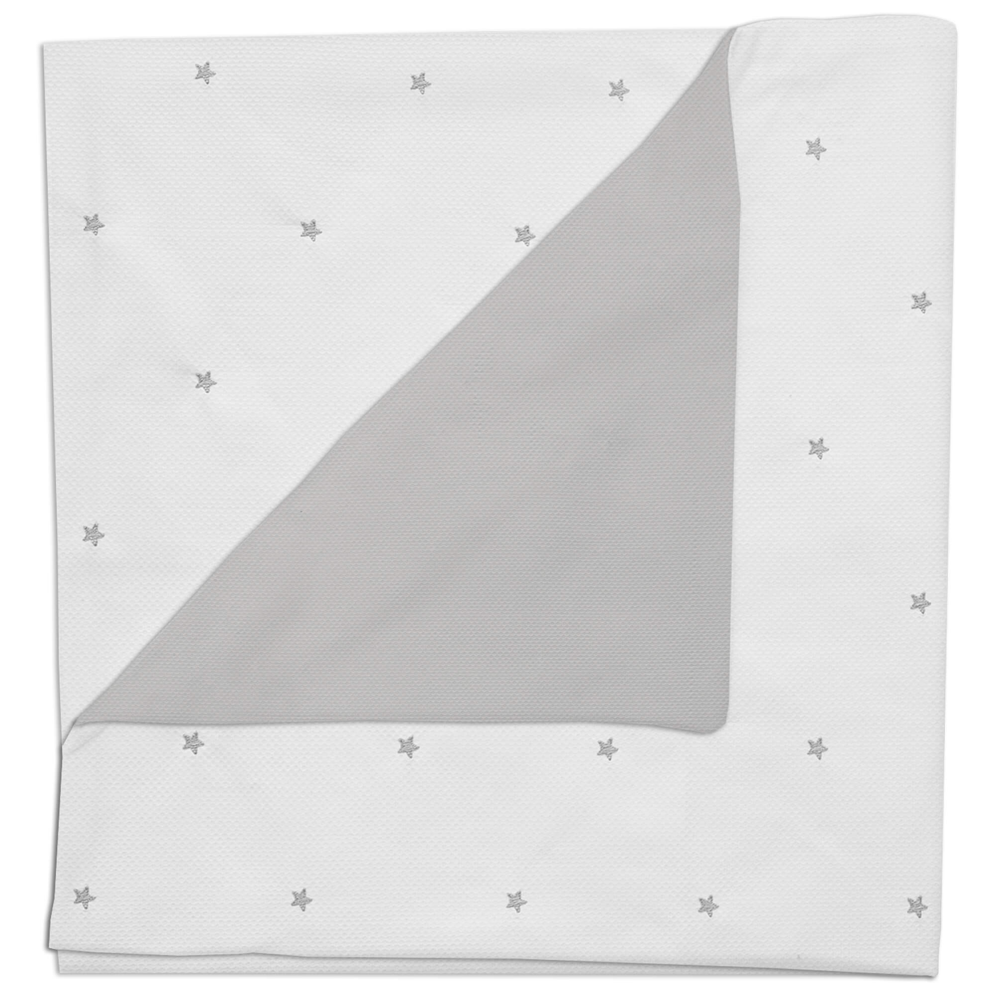 Piq, Liso_ Bordad Mantita Cris Blanco bordado Estrellas Gris PIQUE GRIS