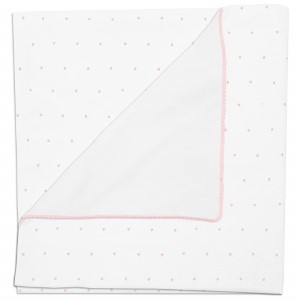 Piq, Bord_ Mantita Alex-Leslie Blanco bordado Topitos y puntilla Rosa PIQUE BLANCO