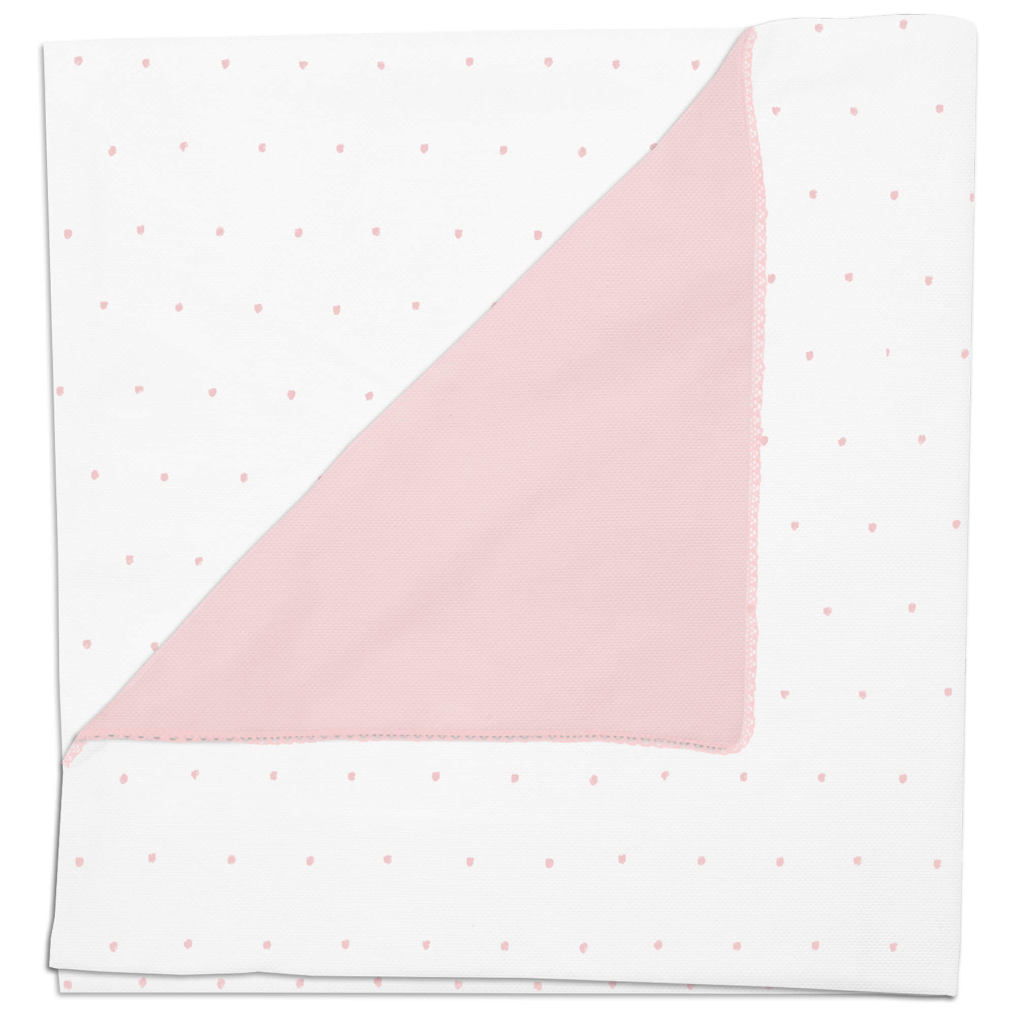 Piq, Bord_ Mantita Alex-Leslie Blanco bordado Topitos y puntilla Rosa PIQUE ROSA