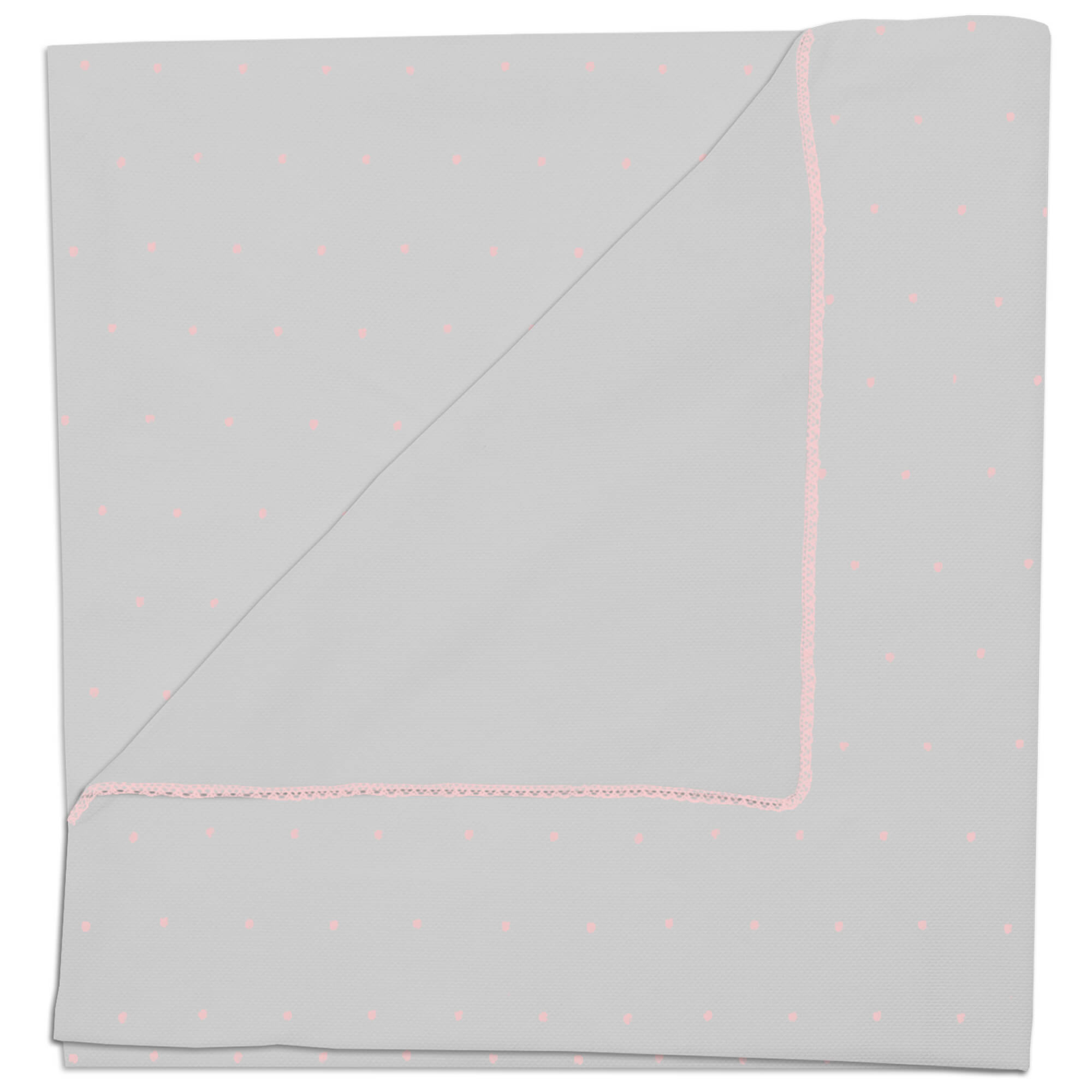 Piq, Bord_ Mantita Alex-Leslie Gris bordado Topitos y puntilla Rosa PIQUE ROSA